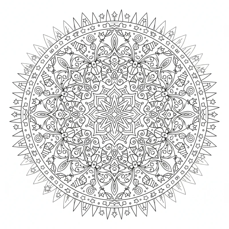 Ce mandala noël est idéal pour réduire le stress et stimuler votre imagination. Téléchargez gratuitement ce coloriage et laissez-vous transporter par la beauté de ce design noël. Parfait pour adultes et enfants.