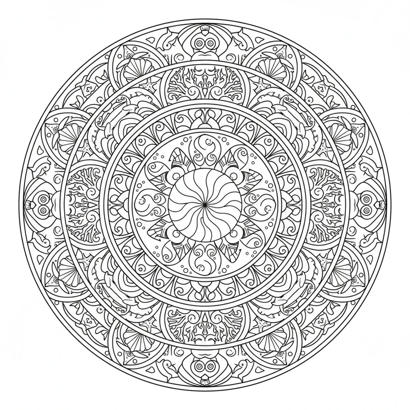 Découvrez ce magnifique mandala océan à colorier. Un design unique inspiré du thème océan, parfait pour un moment de détente et de créativité. Les motifs soigneusement élaborés offrent une expérience de coloriage apaisante.