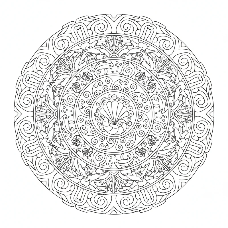 Découvrez ce magnifique mandala océan à colorier. Un design unique inspiré du thème océan, parfait pour un moment de détente et de créativité. Les motifs soigneusement élaborés offrent une expérience de coloriage apaisante.