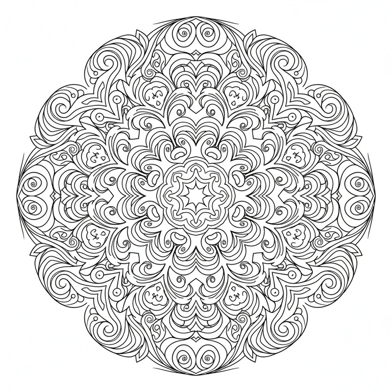 Explorez l'art abstrait avec ce mandala aux motifs créatifs et originaux. Courbes fluides et formes organiques s'entremêlent dans une composition libre qui stimule l'imagination et la créativité.