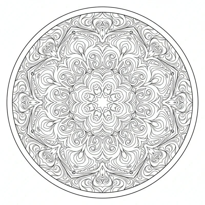 Explorez l'art abstrait avec ce mandala aux motifs créatifs et originaux. Courbes fluides et formes organiques s'entremêlent dans une composition libre qui stimule l'imagination et la créativité.