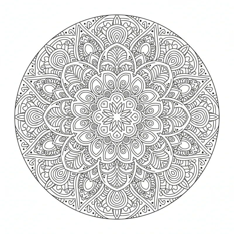 Un mandala abstrait qui repousse les limites de la créativité. Inspiré du style zentangle et des arts décoratifs, ce design offre une liberté totale dans le choix des couleurs et des techniques de coloriage.
