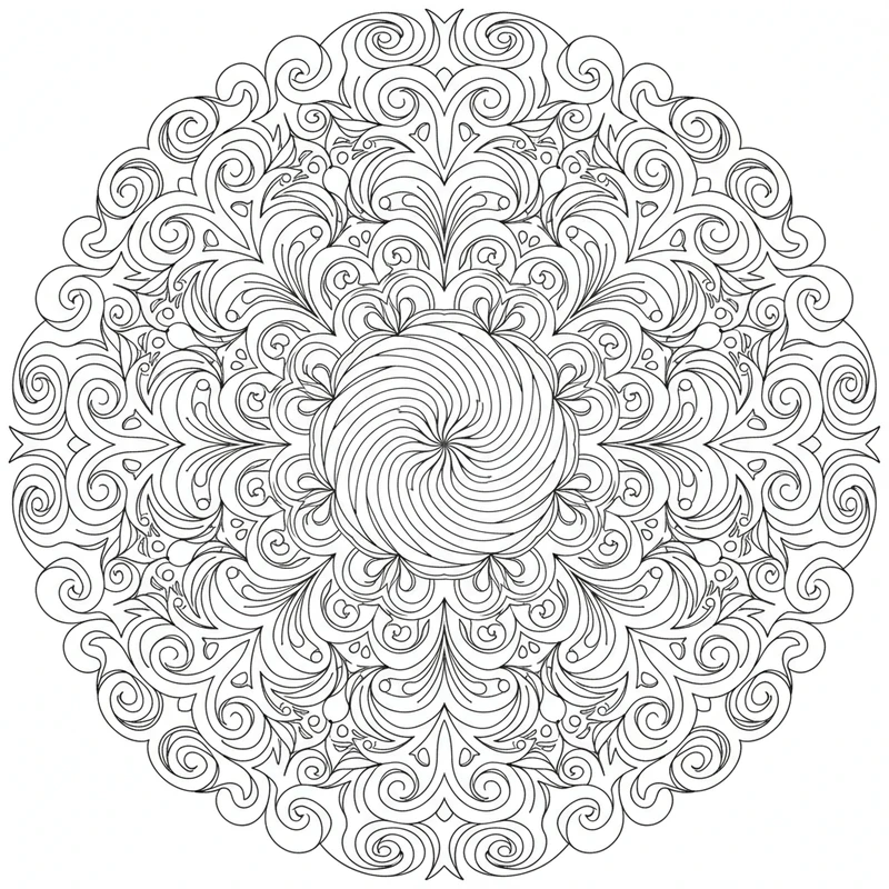 Un mandala abstrait qui repousse les limites de la créativité. Inspiré du style zentangle et des arts décoratifs, ce design offre une liberté totale dans le choix des couleurs et des techniques de coloriage.