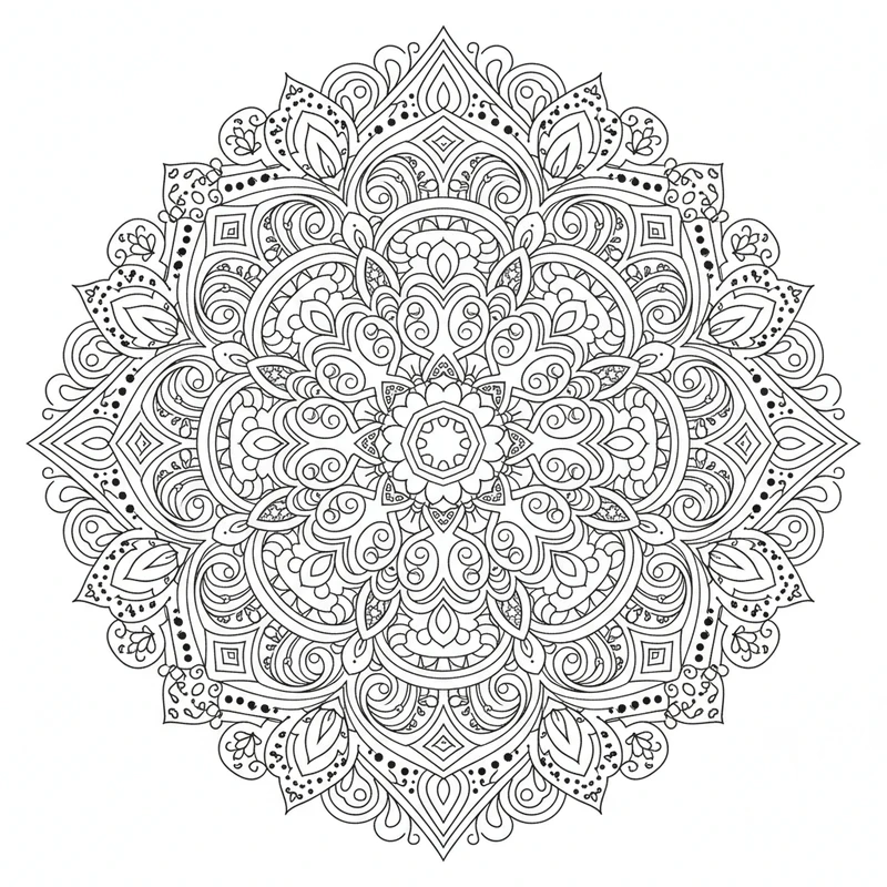 Un mandala abstrait qui repousse les limites de la créativité. Inspiré du style zentangle et des arts décoratifs, ce design offre une liberté totale dans le choix des couleurs et des techniques de coloriage.
