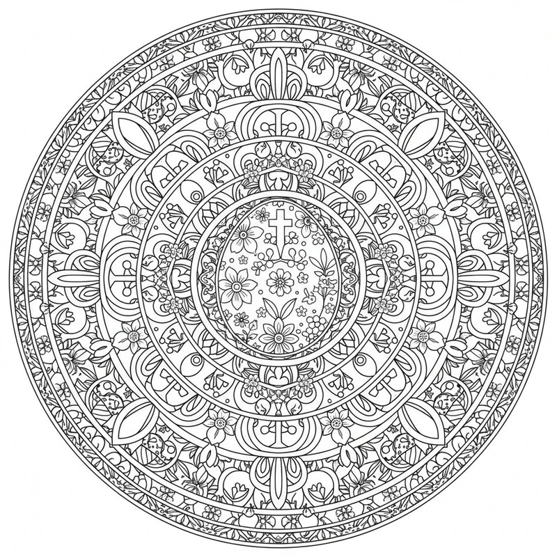 Découvrez ce magnifique mandala pâques à colorier. Un design unique inspiré du thème pâques, parfait pour un moment de détente et de créativité. Les motifs soigneusement élaborés offrent une expérience de coloriage apaisante.