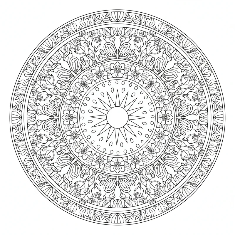 Ce mandala printemps est idéal pour réduire le stress et stimuler votre imagination. Téléchargez gratuitement ce coloriage et laissez-vous transporter par la beauté de ce design printemps. Parfait pour adultes et enfants.