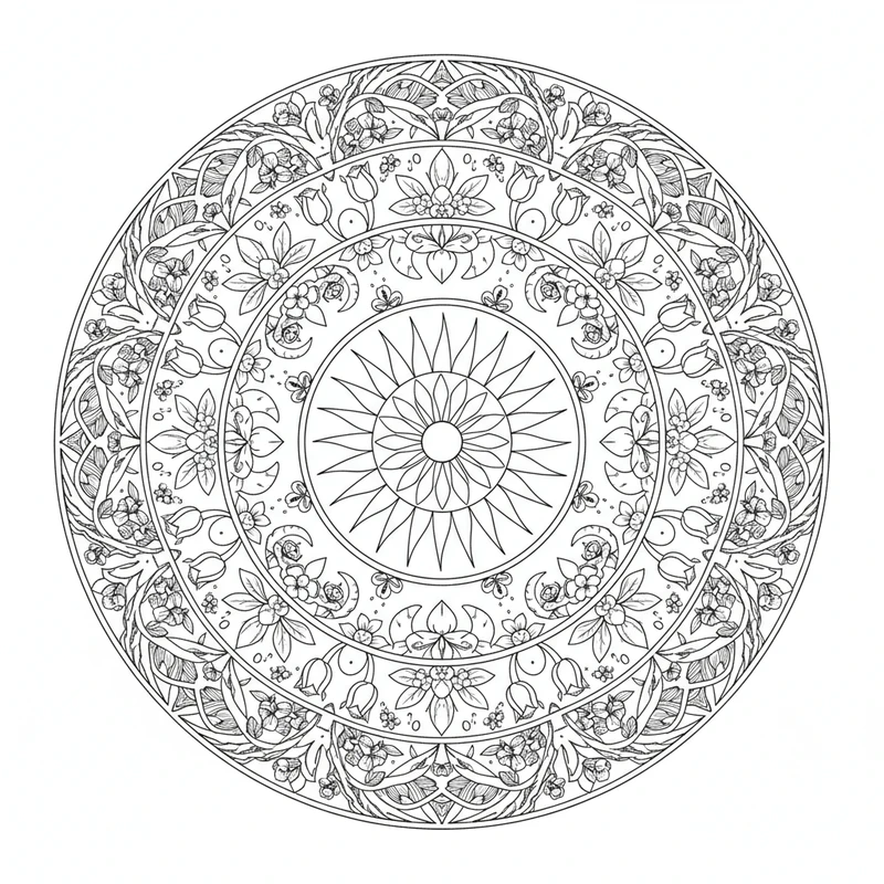 Ce mandala printemps est idéal pour réduire le stress et stimuler votre imagination. Téléchargez gratuitement ce coloriage et laissez-vous transporter par la beauté de ce design printemps. Parfait pour adultes et enfants.