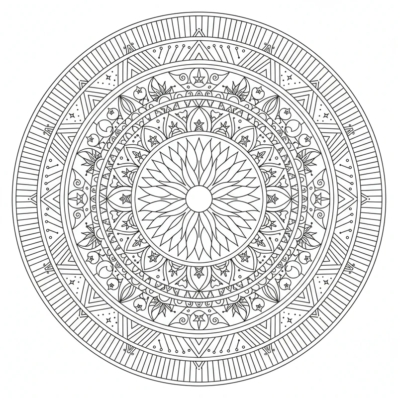 Ce mandala soleil est idéal pour réduire le stress et stimuler votre imagination. Téléchargez gratuitement ce coloriage et laissez-vous transporter par la beauté de ce design soleil. Parfait pour adultes et enfants.