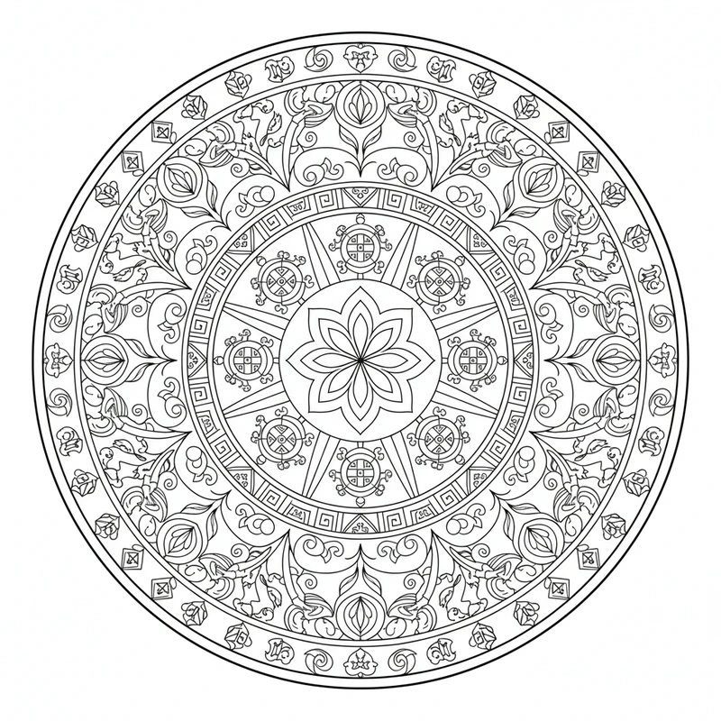 Découvrez ce magnifique mandala tibétain à colorier. Un design unique inspiré du thème tibétain, parfait pour un moment de détente et de créativité. Les motifs soigneusement élaborés offrent une expérience de coloriage apaisante.
