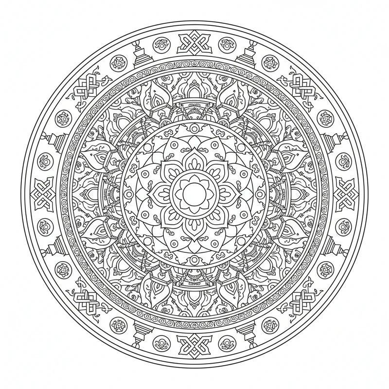 Ce mandala tibétain est idéal pour réduire le stress et stimuler votre imagination. Téléchargez gratuitement ce coloriage et laissez-vous transporter par la beauté de ce design tibétain. Parfait pour adultes et enfants.