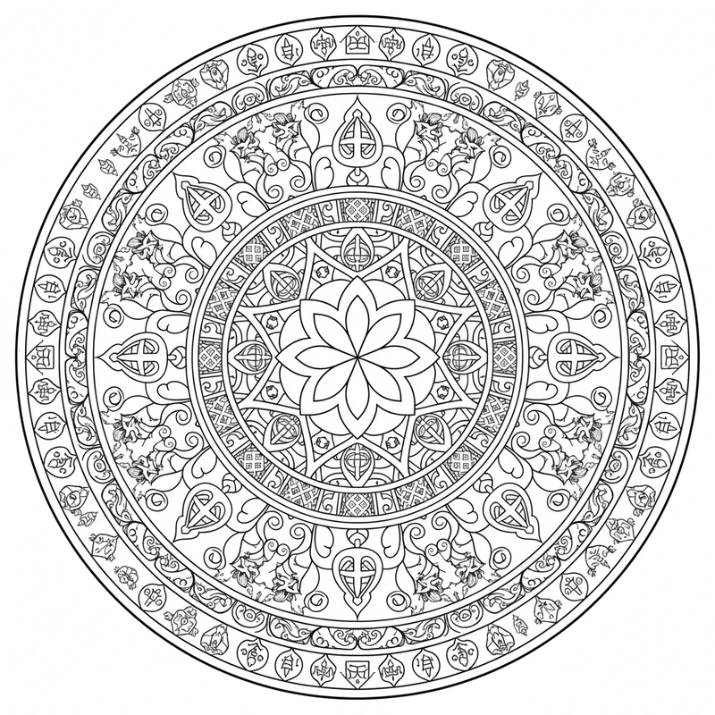 Découvrez ce magnifique mandala tibétain à colorier. Un design unique inspiré du thème tibétain, parfait pour un moment de détente et de créativité. Les motifs soigneusement élaborés offrent une expérience de coloriage apaisante.