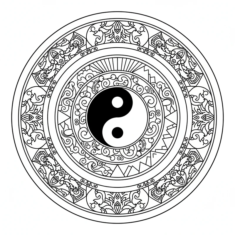Ce mandala yin yang est idéal pour réduire le stress et stimuler votre imagination. Téléchargez gratuitement ce coloriage et laissez-vous transporter par la beauté de ce design yin yang. Parfait pour adultes et enfants.