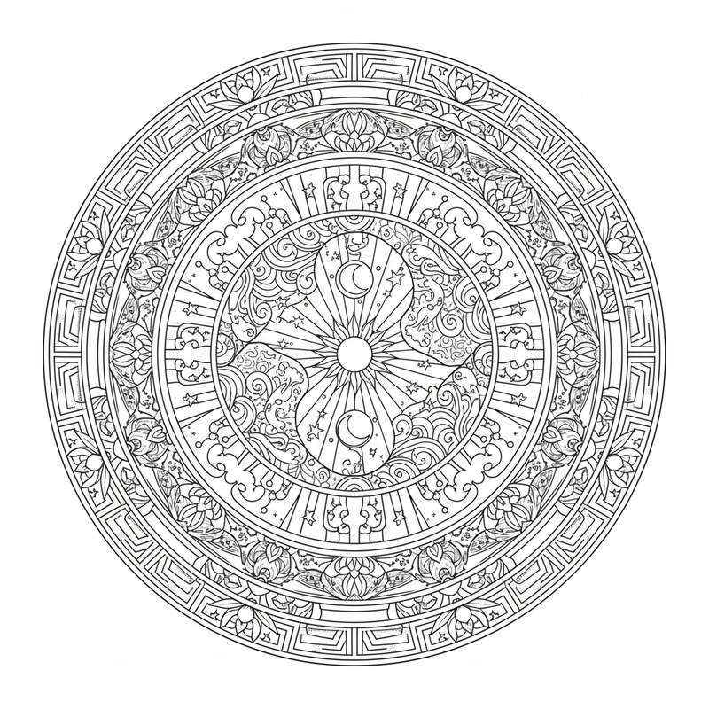 Découvrez ce magnifique mandala yin yang à colorier. Un design unique inspiré du thème yin yang, parfait pour un moment de détente et de créativité. Les motifs soigneusement élaborés offrent une expérience de coloriage apaisante.