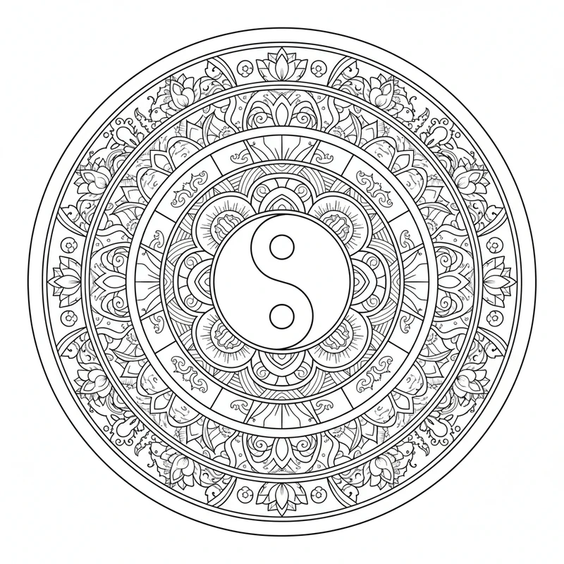 Ce mandala yin yang est idéal pour réduire le stress et stimuler votre imagination. Téléchargez gratuitement ce coloriage et laissez-vous transporter par la beauté de ce design yin yang. Parfait pour adultes et enfants.