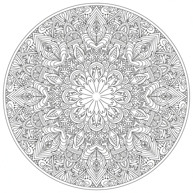 Ce design unique transcende les catégories traditionnelles du mandala. Chaque zone est une invitation à l'expérimentation chromatique. Téléchargez gratuitement ce coloriage et créez votre propre interprétation artistique.