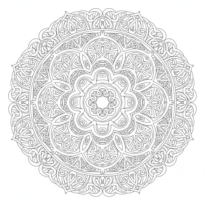Un mandala abstrait qui repousse les limites de la créativité. Inspiré du style zentangle et des arts décoratifs, ce design offre une liberté totale dans le choix des couleurs et des techniques de coloriage.