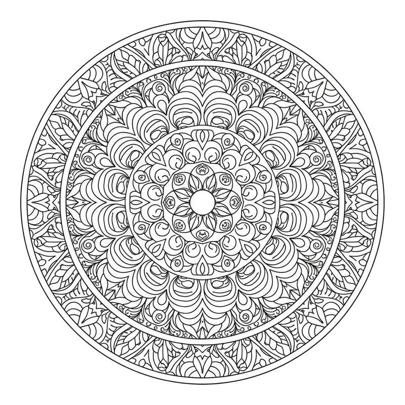 Un mandala abstrait qui repousse les limites de la créativité. Inspiré du style zentangle et des arts décoratifs, ce design offre une liberté totale dans le choix des couleurs et des techniques de coloriage.
