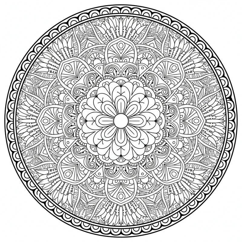 Un mandala abstrait qui repousse les limites de la créativité. Inspiré du style zentangle et des arts décoratifs, ce design offre une liberté totale dans le choix des couleurs et des techniques de coloriage.