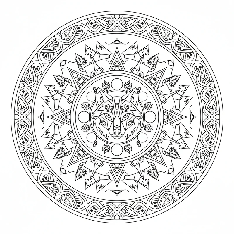Descubra esta bela mandala lobo para colorir. Um design único inspirado no tema lobo, perfeito para reduzir o estresse e estimular a criatividade.