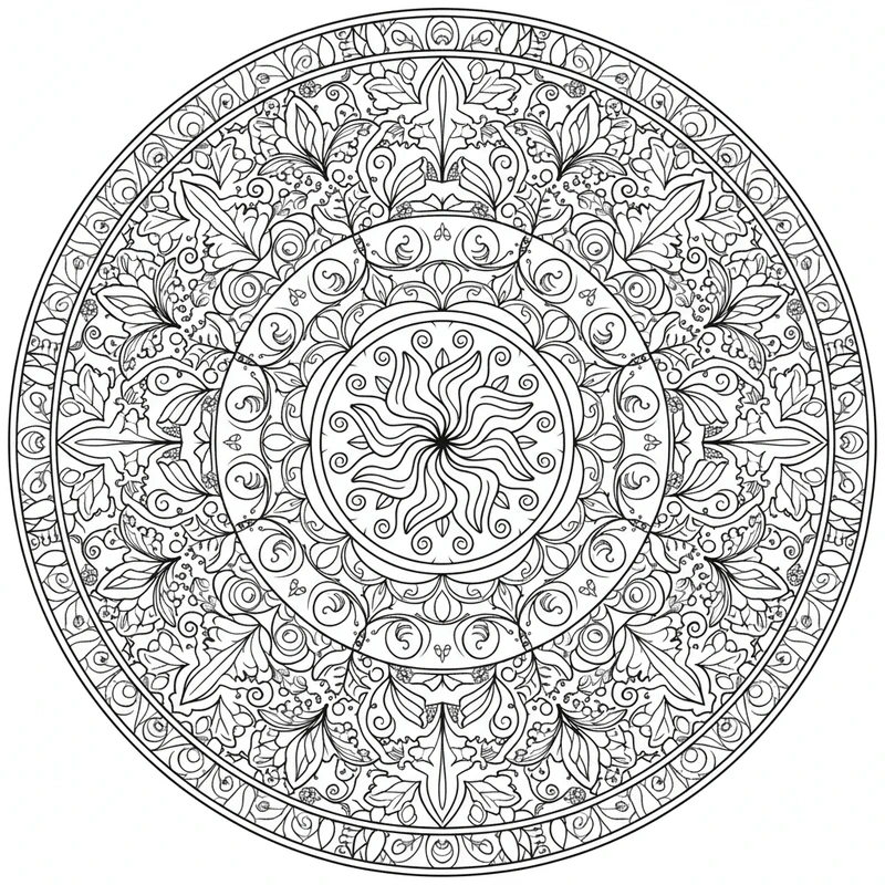Imprima gratuitamente esta página de colorir mandala e aproveite um momento de paz e concentração. Ideal para adultos e crianças que procuram uma atividade artística relaxante.