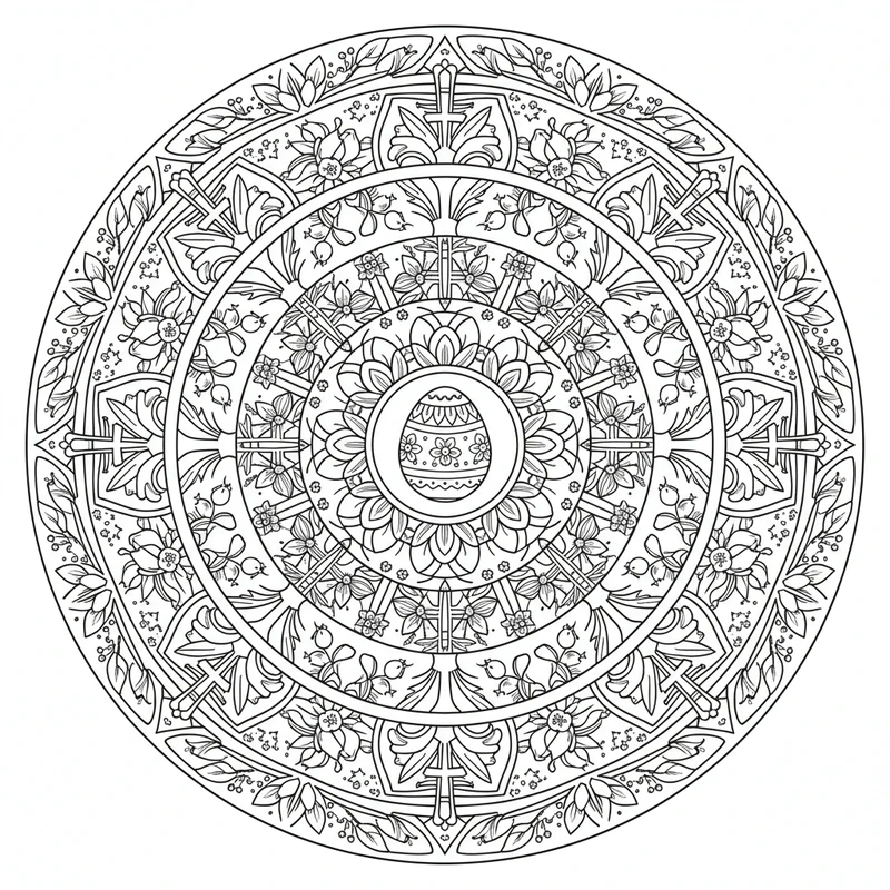 Descubra esta bela mandala páscoa para colorir. Um design único inspirado no tema páscoa, perfeito para reduzir o estresse e estimular a criatividade.